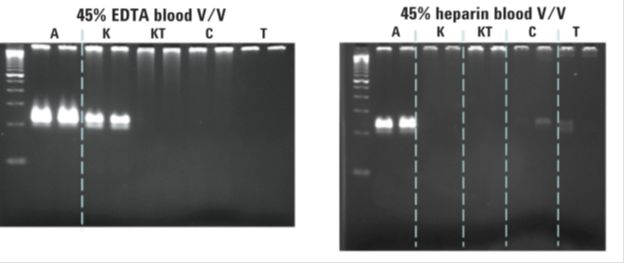 SureDirect Blood PCR Kit enables direct DNA amplification from blood and blood derivatives, streamlining your workflow by eliminating the cumbersome DNA extraction step. This kit features a newly engineered mutant Taq capable of overcoming the most common PCR inhibitors found in blood samples (see Figure 1). With direct amplification from blood, SureDirect Blood PCR Kit eliminates the most laborious and time-consuming DNA extraction process, for accelerated workflows and reduced risk of cross-contamination.