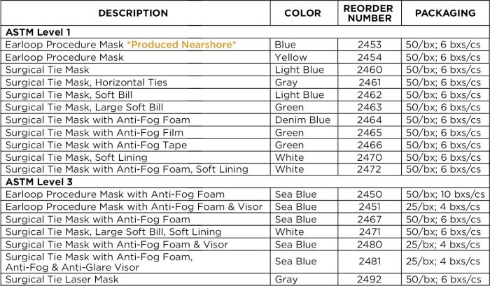 PremierPro™ Surgical and Isolation Masks are designed to deliver both protection and comfort. This new PremierPro mask line offers masks in a variety of styles that provide popular features including visors, soft lining, anti-fog options and more. Keeping you protected is our top priority, and because of this, all of the styles and features offered are available in masks that meet the ASTM standards for face masks.