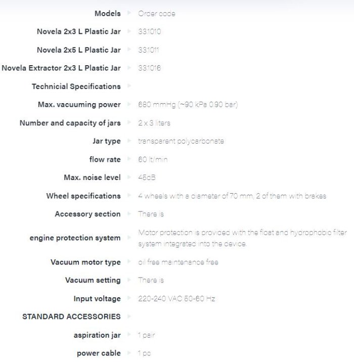 Novela is suitable for use in all kinds of operations with a vacuum power of 60 liters / min in the range of 680 mmHg.