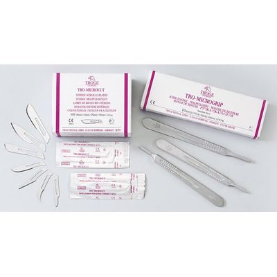 TRO-MICROCUT surgical blades are made of carbon steel. The precision blades show durable sharpness also during long incisions. The alu-foil packaging ensures suitable protection and is easy to open because the opening flaps have different lengths. Sterile, pyrogenfree and atoxic. Also available in stainless steel.
