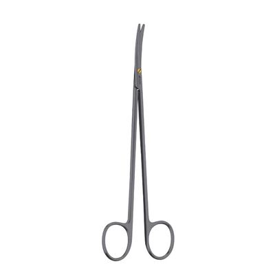 Knife edges and micro serration: Fine, minimally traumatizing cut. Ceramic coating: High surface hardness: long lasting cutting ability: non-dazzling surface: excellent sliding capacity. Welded tungsten carbide cutting edge: Corrosion-free welding seam; seamless, homogenous junction of tungsten carbide and scissors Black finish, golden screw. Characteristics: Reduction of the transversal cut: Better visibility + precise preparation.