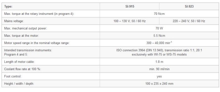 - Motor with cable, thermo washer disinfectable and sterilizable