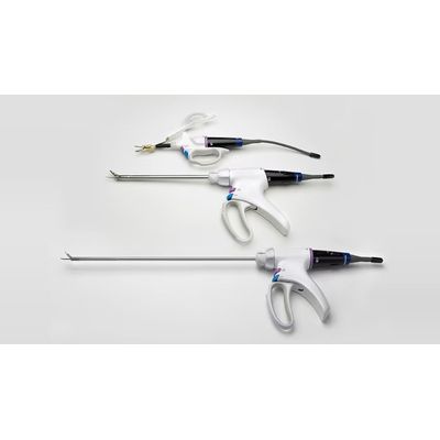 Even the angle of the handle is highly significant. The pistol-type device is available in two versions, one for laparoscopic surgery and one for open surgery. The shapes appear to be the same, but in fact the handle angles are slightly different to ensure optimal user-friendliness with respect to the procedural differences between laparoscopic and open surgeries.