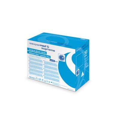 Sempermed supreme stands for quality and reliability and is not without reason one of the most frequently used powder-free surgical gloves in Europe. With its synthetic inner coating the glove is easy to don due to its patented net structure. The Sempermed® supreme has a fully anatomical shape and therefore reduces strain for wearers.