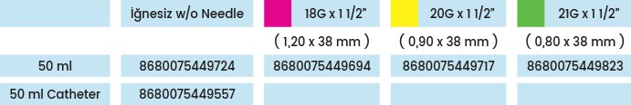 Made of polypropylene; Easy aspiration up to maximum volume; Minimal residual volume; High impermeability; Easy and confortable piston movement; Safe plunger backstop; Medical grade blister packing consisting of transparent film; EO Sterilization.
