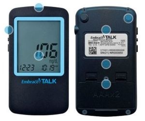 The feature-rich no coding EmbraceTALK Blood Glucose Meter delivers fast, accurate results using a very small blood sample, and with the talking feature you have the option to hear your results as well as see them.