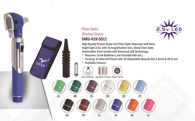 High Quality Pochet Sized mini Fiber Optic Otoscope with Extra bright light 2.5v. with 3x magnification lens. Distal Fiver Optic illumination 4mm bundle with Enhanced LED Technology.