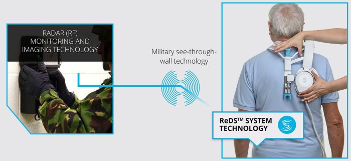 ReDS™ technology originated in the defense technology that allows the military to see through walls and find survivors in the rubble of collapsed buildings. Sensible Medical adapted this technology for medical use by creating a system to see through the ‘walls’ of the chest and inside the lungs of Heart Failure patients. It takes just 45 seconds to get a ReDS™ measurement at the hospital, the clinic, or even in the comfort of a patient’s home.