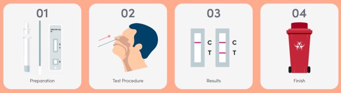 Keep your family and business safe with the Flowflex™ SARS-CoV-2 Antigen Rapid Self-Test. Performed in just 15 minutes, simply swab, mix with reagents conveniently included in the kit, add the sample to the cassette, and wait 15 minutes to read the results.