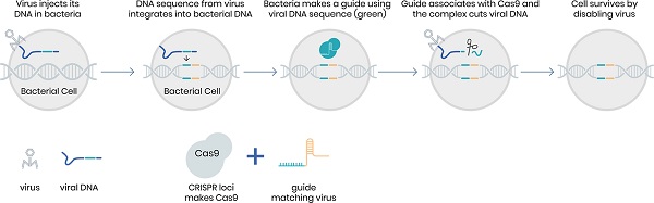 Intellia has co-opted the bacterial immune system by identifying the key components (pictured above) and applying them to human DNA. Upon DNA cleavage, the natural cellular repair processes come into play to result in knockout, repair or insertion of genetic material. Click here to watch how CRISPR/Cas9 works.