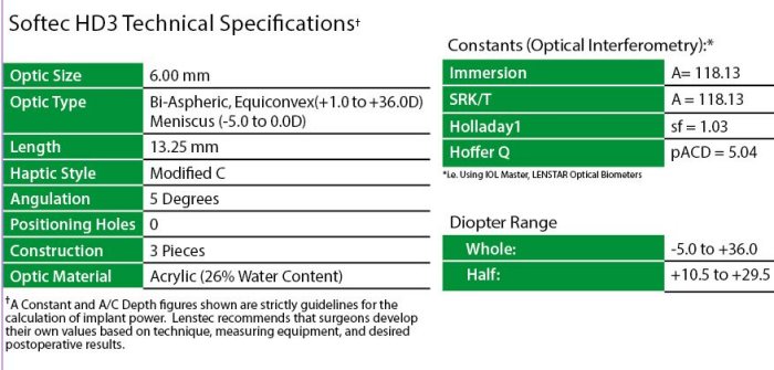 Lenstec Softec - Model HD3 -Three-Piece Intraocular Lens