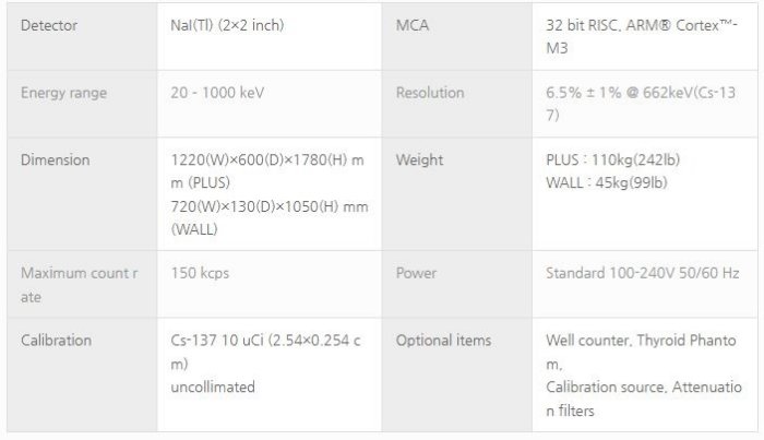 The system integrated digital MCA and DAQ eliminates the need of desk-top based PCI cards for data acquisition. Ergonomic and small footprint design becomes easier with a lap-top computer. By option, customer can choose the ThyroWiz™-Wall model for extremely limited spaces. - USER FRIENDLY APPLICATION SW & GUI