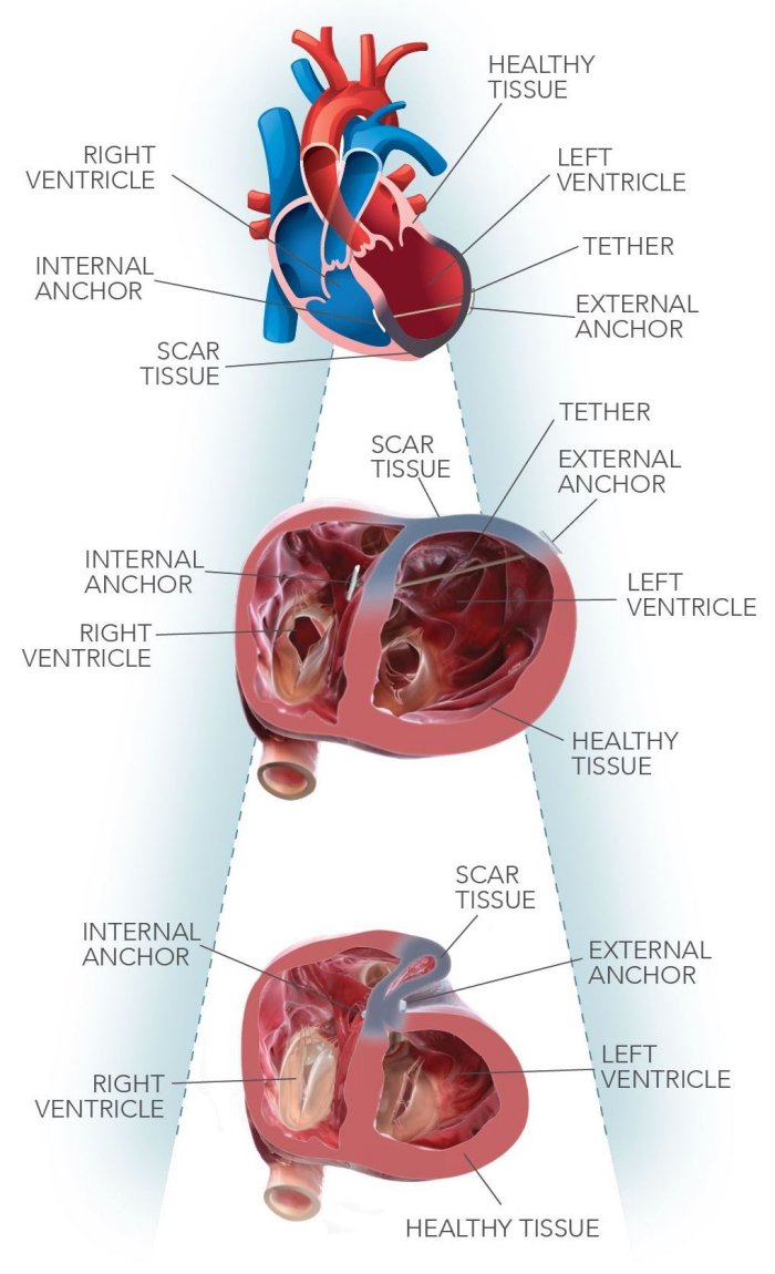 Less Invasive Ventricular Enhancement. Enable volume reduction through micro-anchors designed to exclude left ventricular scarred myocardial tissue.