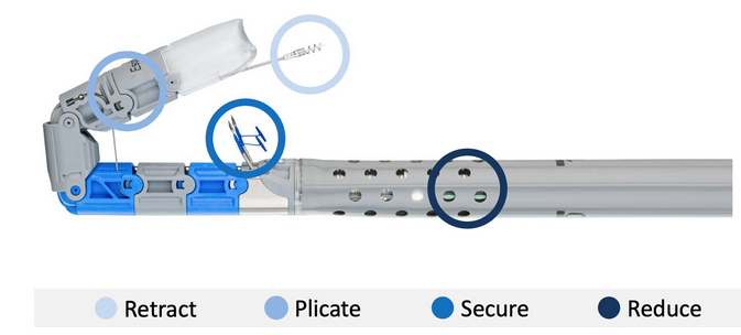 - Plicates and compresses tissue