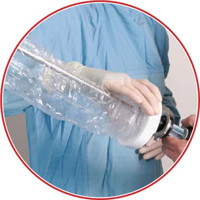 Transparent sheath with open tip , for the protection of endoscopic cameras. It protects the camera and operator from the risk of contamination, guarantees the sterility of the operating field and allows for quick reordering. Ready to use and easy to apply, they are available with or without inserter.
