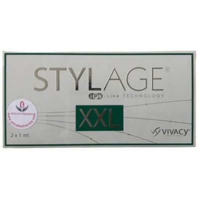 - 2 x 1 ml or 1 x 2,2 ml pre-filled glass, sterile latex free syringes of STYLAGE XXL gel