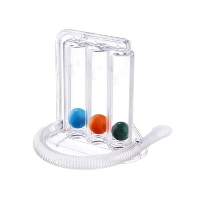 The Tri-Ball Spirometer provides respiration rehabilitation training to help patients with breathing problems (ex. after chest or abdominal surgery) recover normal breathing. The device is intended for single-patient, multi-use in a hospital or home care setting.