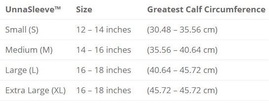 The UnnaSleeve™ device does not apply compression to the patient in a recumbent position since it is applied snugly, but not tightly. When the patient stands or sits upright, the UnnaSleeve™ device does not stretch and therefore greatly reduces the amount of venous distention. The amount of pressure applied will depend on the height of the venous column from the heart to the calf. The longer the venous column, the greater the applied pressure. The UnnaSleeve™ device applies a pressure equal and opposite to the internal hydrostatic pressure.