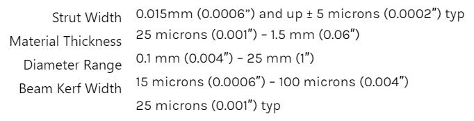 Tube cutting uses a laser beam delivery positioned over an x-y-rotary motion system. Additional axes are available for tilt, focus, and off-center cutting. Advanced energy-management techniques produce a clean, smooth edge.