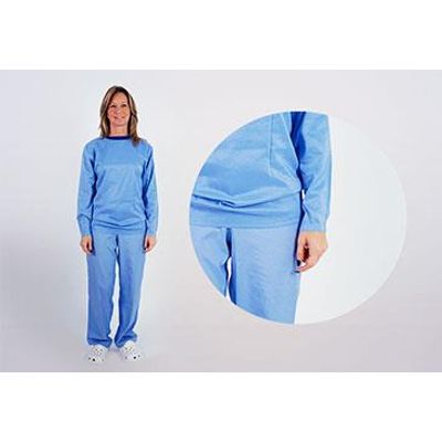 Undergarment for tunic with knitted round collar and pressure sleeves.