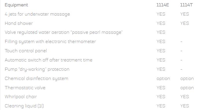 Whirlpool 1114 is designed for massage of the hands, forearms and elbows. Jets with adjustable directions of water outflow allow to conduct a thorough treatment of the upper limbs. Pearl massage enhances the functionality of the bathtub and optional retrofit allows you to customize a bath to meet your requirements. The design provides easy access for wheelchair patients.