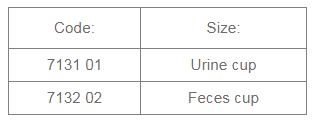Urine Cup - Size: 30ml/60ml/120ml. Feces Cup - Size 60ml.