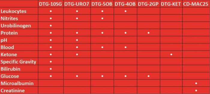 Consistent results, Competitively priced, Tests in the same order as leading brands, Room temperature storage, CAP/API values listed, 100 strips per box.