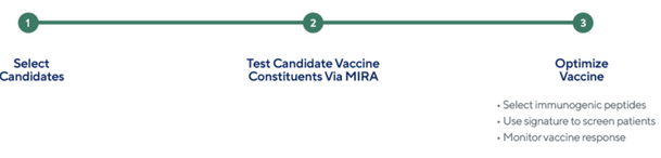 Our TCR-antigen discovery capabilities may inform the design and development of next-generation vaccines. Adaptive has validated hundreds of immunogenic antigens that can be selected to design differentiated vaccines. Our platform is also used to detect and track vaccine-induced antigen-specific T cell responses that correlate with efficacy and safety. Our antigen specificity approach may be used to identify and inform the selection of the most immunogenic antigens to use in the development of either an “off-the-shelf” or a personalized vaccine.