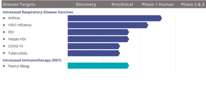 BlueWillow’s intranasal vaccine technology has demonstrated safety and immunogenicity in Phase 1 clinical studies using a seasonal influenza vaccine. Several other ongoing BlueWillow programs — including intranasal vaccines for anthrax, pandemic influenza, RSV, HSV-2 and chlamydia — have recently advanced through successful challenge studies in the respective primary animal model. Click on a program below for details on our research results and partnering information.