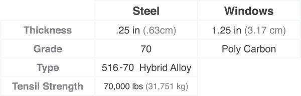 - Hard Shell Chamber: approx. 1100 lbs when assembled.