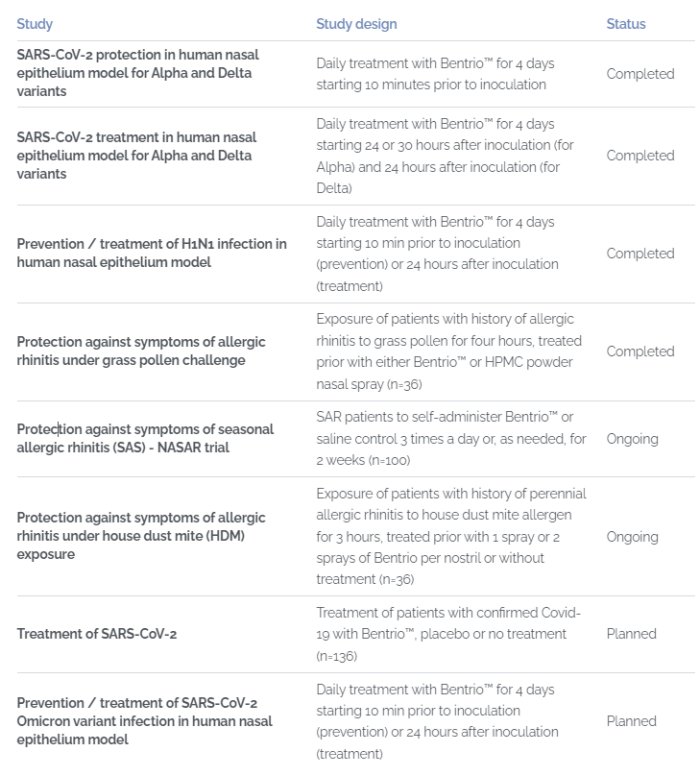 The NASAR trial, initiated in December 2021, is being conducted during the current pollen season at several study sites in Australia. The trial, which will enroll a total of 100 SAR patients, is designed to compare the safety and efficacy of Bentrio™ against a saline nasal spray.