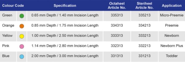 Vitrex baby lancets are intended for high volume blood flow with minimum depth of penetration. The safety lancets are primarily applicable for newborns and preemies. However, they can also be recommended for other applications, where short penetration depth and/or minimal compression of tissue is important. Vitrex Octaheel Baby and Vitrex Steriheel Baby lancets have the same indications and features, but Vitrex Octaheel is the newest edition, which offers improved ergonomy.