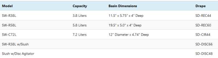 - 120 Volt A/C, 60 Hz, 3 Amps for Model SW-R38L, 4 Amps for Models SW-R58L and SW-C72L