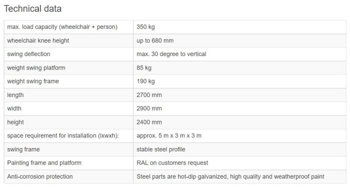 Specially designed for people in wheelchairs. The swing can be used with your own wheelchair (no need to lift it out). Stable and safe construction. Certified safety according to: DIN EN 1176-1 & DIN EN 1176-2. Gentle, even and steady rocking. Safe handling. Calming effect. Conveys joy of living.