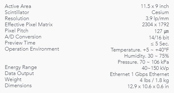 Rayence - Model 1012WCC -Wireless Flat Panel Detector