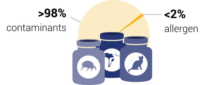 Commercial allergen extracts may contain up to 95% of non-allergenic contaminants, a reality that current extraction technology can hardly improve upon. This level of heterogeneity (impurities) explains: