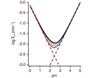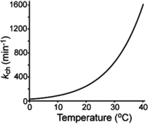 Temperature is another major factor affecting kch and should be controlled throughout the HDX-MS experiment. While we acknowledge that temperature might also affect the solution structure and dynamics of proteins, here we focus only on the effects related to kch. The solution temperature directly correlates with the dissociation constant of heavy water (KD2O) in a specific buffer system, thus affecting the concentration of D3O+ and OD- in solution. The theoretical values of kch at a specific temperature can be calculated using a modified Arrhenius equation.