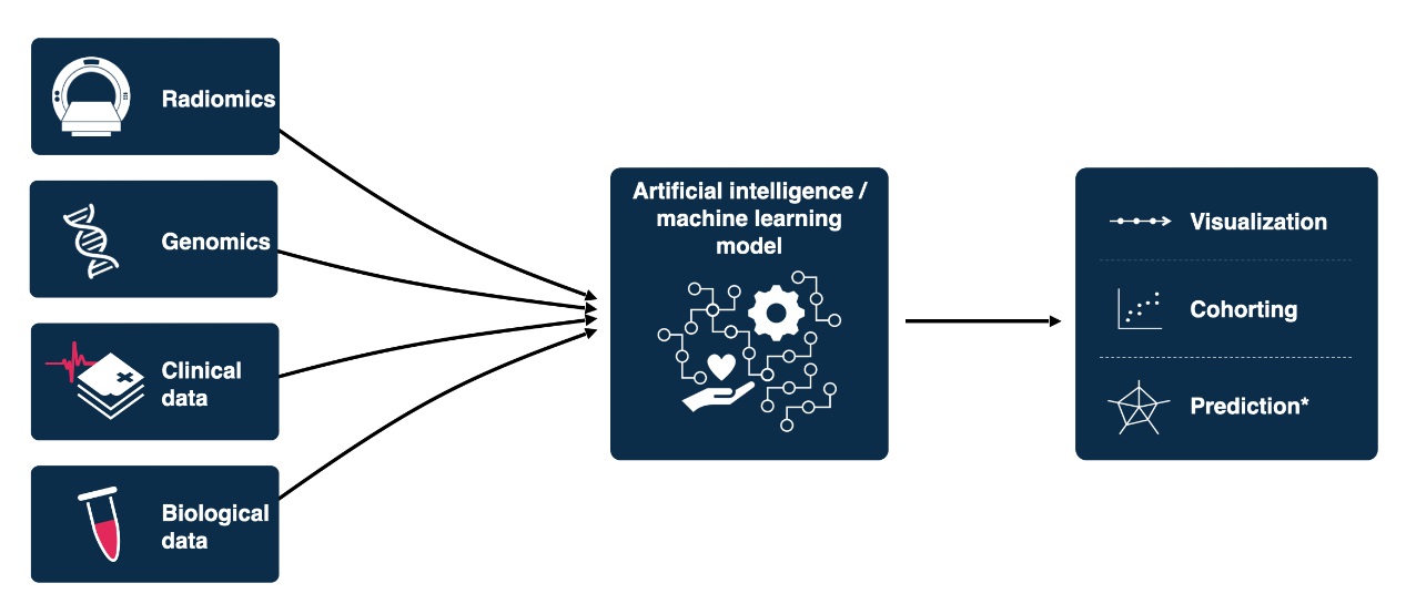 SOPHiA GENETICS is a leader in multimodal analytics that drive the discovery of novel biomarker signatures for accurate patient stratification. Harnessing the power of advanced AI and machine learning, we unlock multimodal insights across a wide range of digital health data modalities. We generate high-quality genomics and radiomics data, and combine existing multimodal data sets using our 10+ organ-specific algorithms to identify potentially predictive or prognostic signatures (Fig. 2).