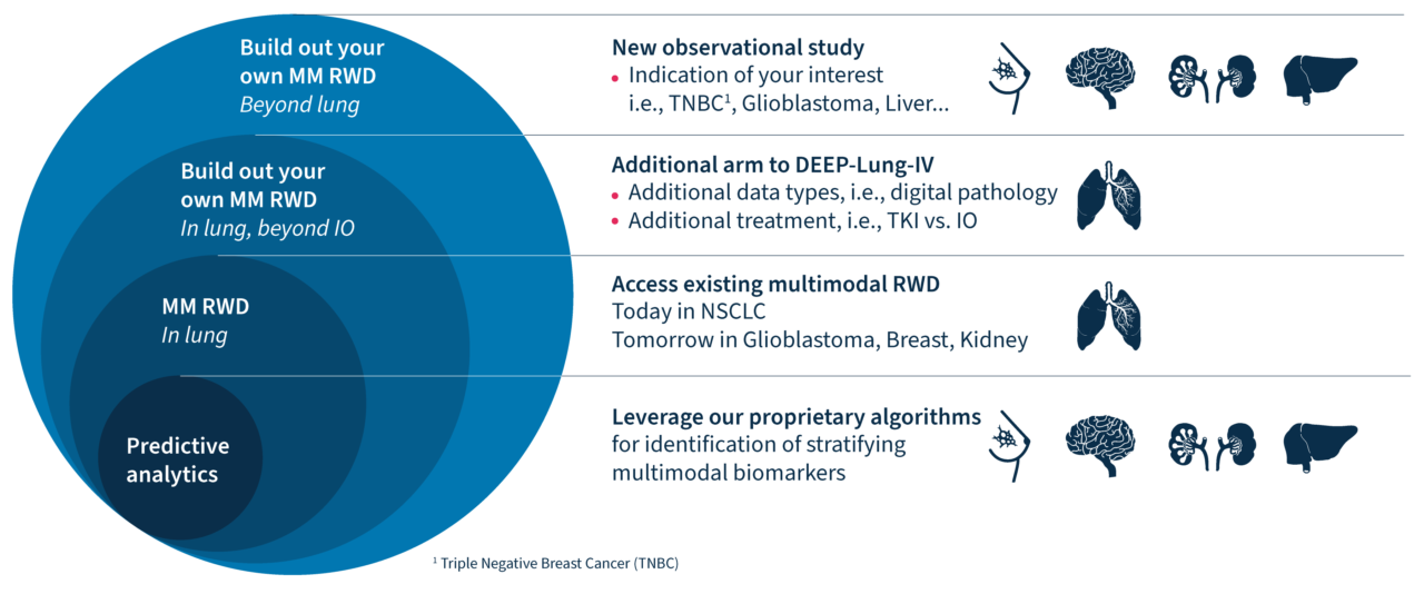 The study leverages machine learning-enabled analysis of aggregated multimodal clinical, biological, genomics, and radiomics data to identify and validate predictive signatures associated with response to immunotherapy and prognosis of patients with metastatic non-small cell lung cancer (NSCLC). DEEP-Lung-IV aims to generate entirely novel insights to improve clinical outcomes for patients with stage IV NSCLC treated with immunotherapy and develop next-generation patient stratification strategies to support selecting the right patients for clinical trials.