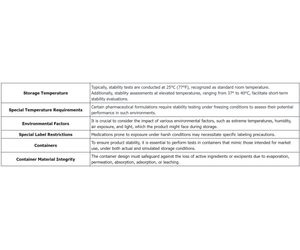(3) Storage Conditions: This includes specifications for shelf-life duration of studies, expiration dates, temperature settings, environmental factors, and special labeling restrictions.
