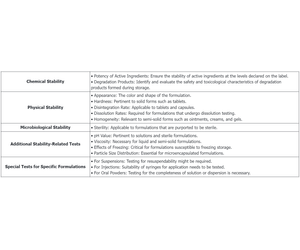 Biopharmaceutical stability can be categorized into various types based on the testing objectives and conditions, including: