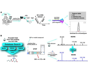 The composition of CSF is almost unchanging and CSF is continuously secreted with maintaining a stable environment within the brain. Therefore, analyzing the CSF metabolome can provide biochemical clues for CNS diseases such as brain injury, multiple sclerosis, and Parkinson's disease. High-throughput metabolomic technologies available for CSF analysis include H-NMR spectroscopy, LC-MS, GC-MS, DFI-MS/MS, ICP-MS. CSF is rich in trace metals, which play a crucial role in enzyme function and many neurodegenerative diseases (such as Alzheimer's disease, Parkinson's disease, and other related disorders). As the optimal technology for characterizing metal elements in biological samples, ICP-MS can be used for quantitative analysis of trace metals in CSF. ICP-MS can effectively identify and quantify a large number of trace metals. The DFI-MS/MS method provides a quantitative platform for 67 compounds that cannot be identified through GC-MS, LC-MS, and NMR techniques.1