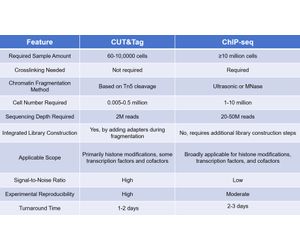 Compared to traditional ChIP-seq, CUT&Tag excels across multiple dimensions: