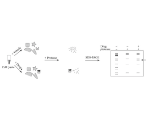 The main experimental procedure of DARTS is to co-incubate small molecule drugs with proteins for a certain time, followed by adding protease for digestion. The binding of SM to target protein can make the protein more resistant to protease, after gel electrophoresis staining, compared to the non-drug digestion group, the protected bands are identified, then identified through mass spectrometry (MS).