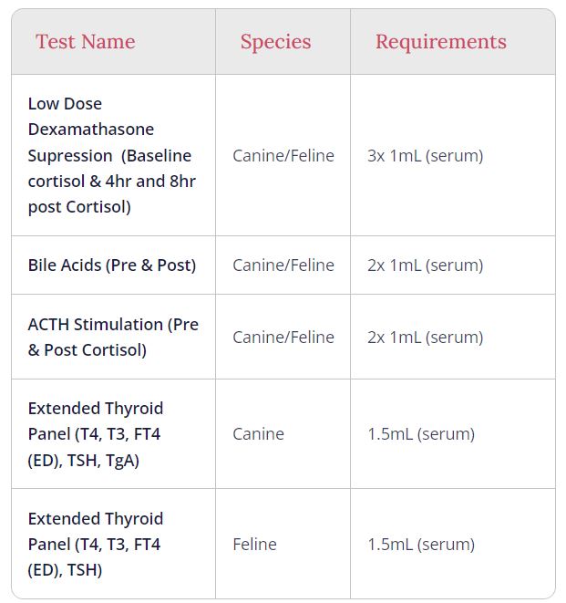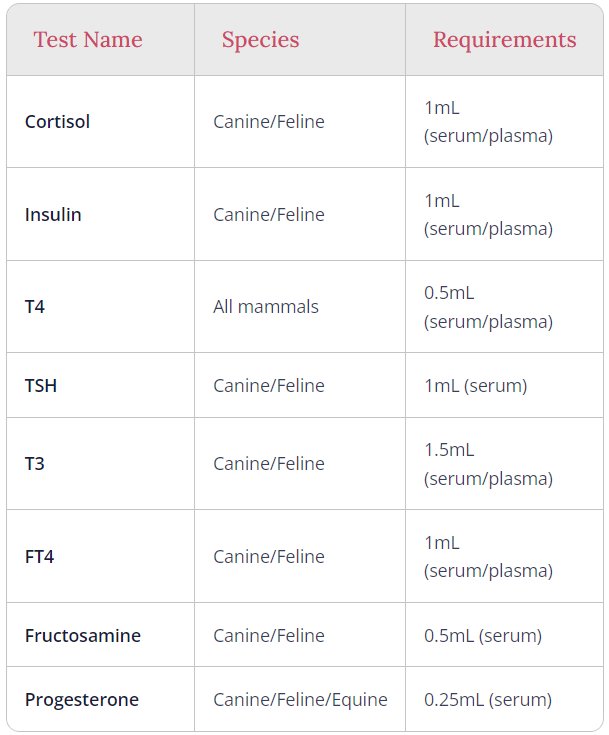 What solutions are available for what species: Canine/Feline; Small Mammal; Avain & Reptile.