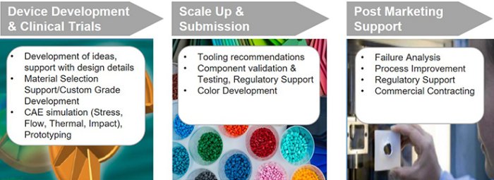 At Celanese, we believe that supporting Medical and Pharmaceutical customers is about much more than selling a raw material. We are your materials consultants from initial concept, through part design, all the way past commercial launch of your device or combination product. Below are some of the material services that are offered as standard both during and after device development with our materials.