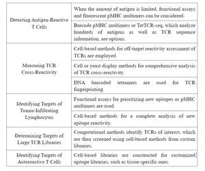 The overarching strategy in TCR-directed approaches is to sift through extensive libraries of pMHC complexes for specific TCRs or T cell clones. Initial methods involved combinatorial peptide libraries that randomized all but one position, aiming to isolate clones of interest.