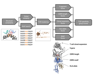 [3] Glanville J, Huang H, Nau A, Hatton O, Wagar LE, Rubelt F, Ji X, Han A, Krams SM, Pettus C, Haas N, Arlehamn CSL, Sette A, Boyd SD, Scriba TJ, Martinez OM, Davis MM. Identifying specificity groups in the T cell receptor repertoire. Nature. 2017 Jul 6;547(7661):94-98. doi: 10.1038/nature22976. Epub 2017 Jun 21. PMID: 28636589; PMCID: PMC5794212.