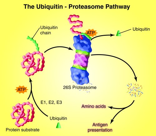 Ubiquitin is an about 8.5 kDa polypeptide consisting of 76 amino acids that is appended to the ε-NH2 of lysine in target proteins via the C-terminal glycine of ubiquitin. Following an initial monoubiquitination event, the formation of a ubiquitin polymer may occur, and polyubiquitinated proteins are then recognized by the 26S proteasome that catalyzes the degradation of the ubiquitinated protein and the recycling of ubiquitin.Most popular related searches