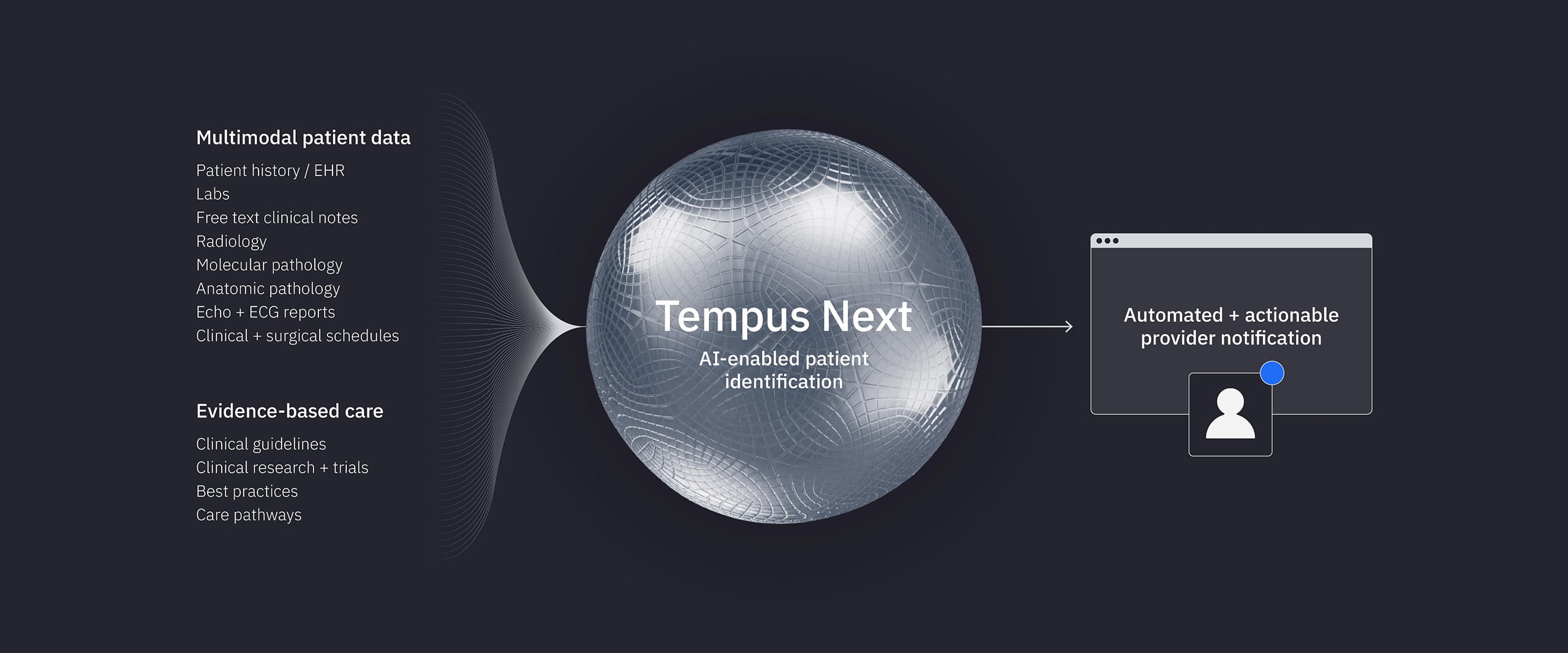 Tempus Next applies technology, data, and AI to enable precision medicine, empowering providers to deliver the next step in a patient’s care journey and foster value based care within health systems.